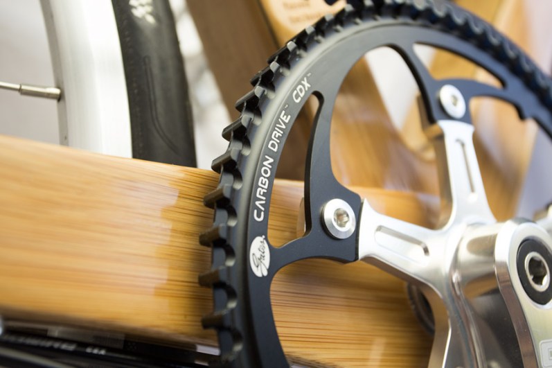 The frame, which weights just 3.3kgs is a combination of bamboo and flax, the former gives the frame its wooden good looks while the latter adds strength and impact absorption. To ensure minimal void content in laminates and an optimum fibre volume fraction, Guapa engineered their own pre-preg flax, creating a bike that the company say is probably the most sustainable and highly engineered available today.