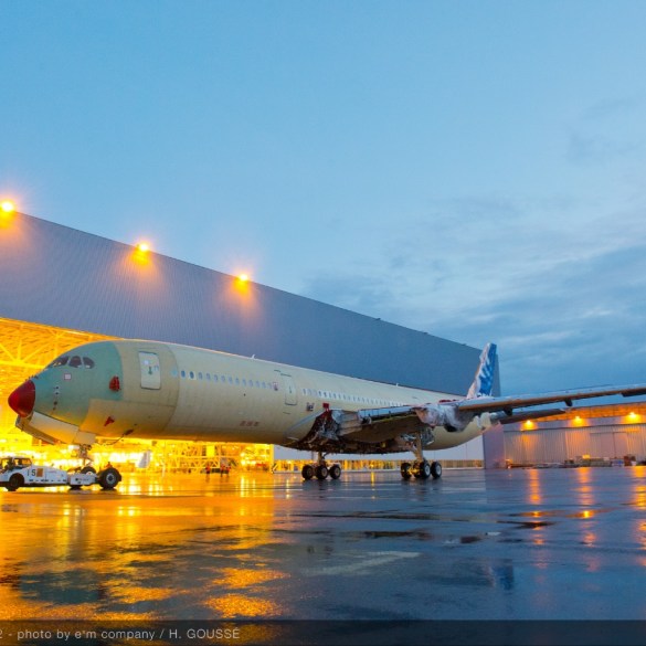 Although not a long haul journey the composites clad A350 XWB MS1 flight test vehicle was moved on wheels for...