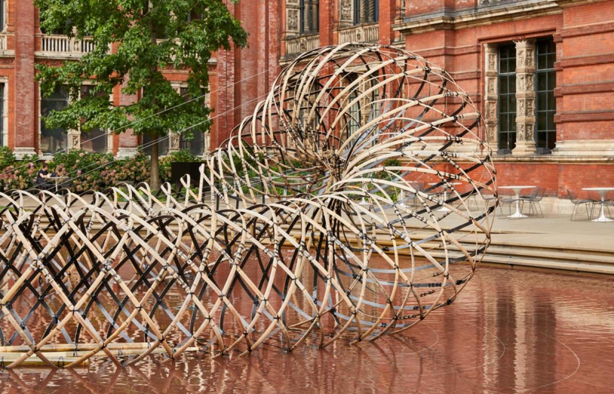 Japanese architect Kuma, founder of Kengo Kuma & Associates created the installation Bamboo (竹) Ring, or ‘Take-wa 竹わ’, an experiment in the concept of weaving bamboo with carbon fibre and was showcased John Madjeski Garden in Knightsbridge.