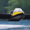 This is the Subwing, invented by Simon Sivertsen in 2010 the subwing works in a similar way to a fish fin, pressing the leading edge of the device down will cause the rider to dive, pulling up will make the rider surface and twisting it left or right will change direction – at least as much as the 15 feet of rope that you are being towed behind the boat will allow.