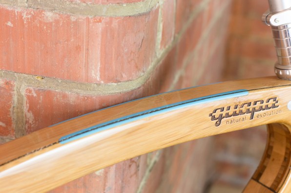 The frame, which weights just 3.3kgs is a combination of bamboo and flax, the former gives the frame its wooden good looks while the latter adds strength and impact absorption. To ensure minimal void content in laminates and an optimum fibre volume fraction, Guapa engineered their own pre-preg flax, creating a bike that the company say is probably the most sustainable and highly engineered available today.